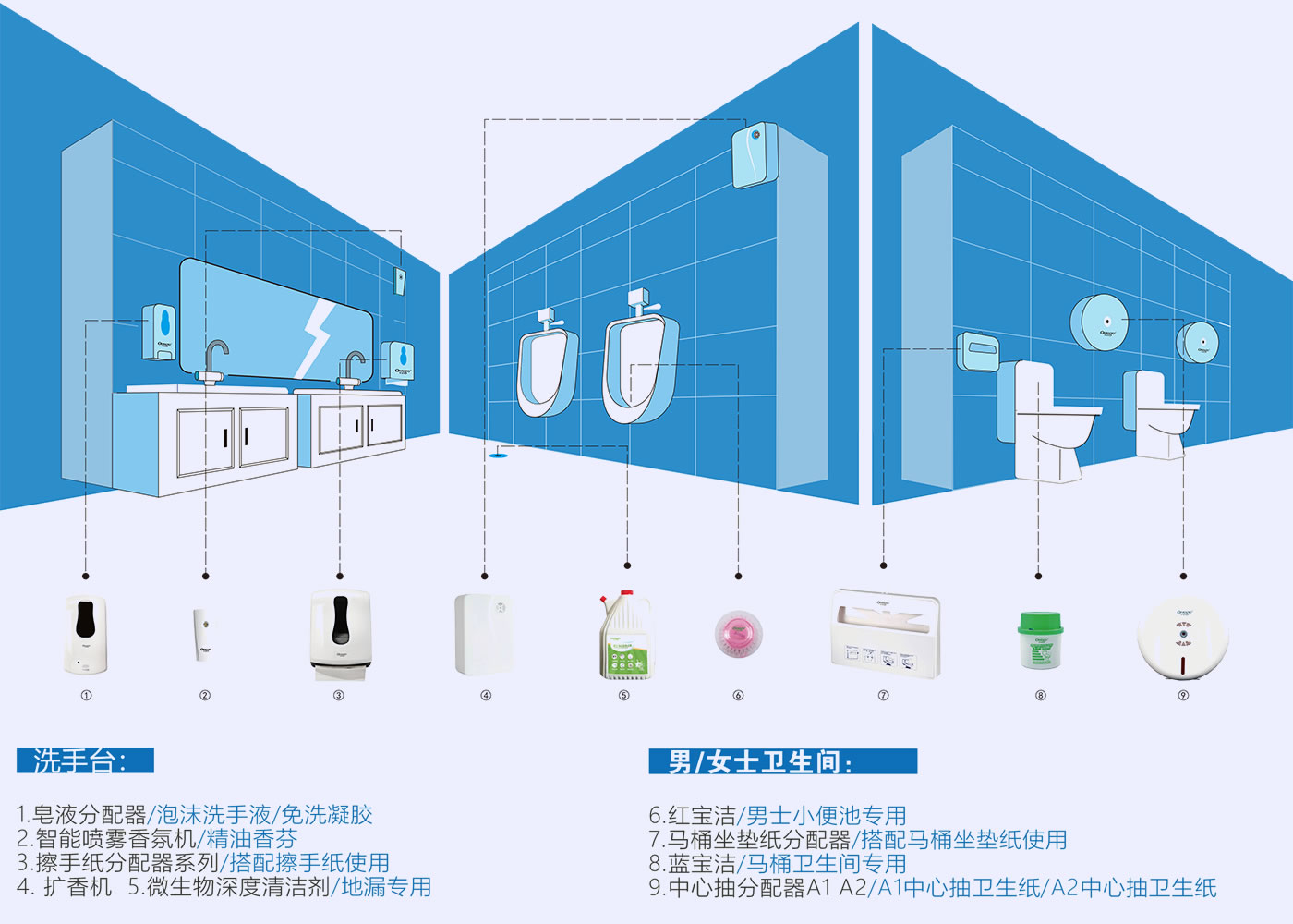 萬戈衛(wèi)生間商用清潔衛(wèi)生用品解決方案,有效解決常規(guī)衛(wèi)生間使用大卷紙安全性差,隨意拽取造成浪費,拉扯時大面積接觸紙張有交叉感染風險。