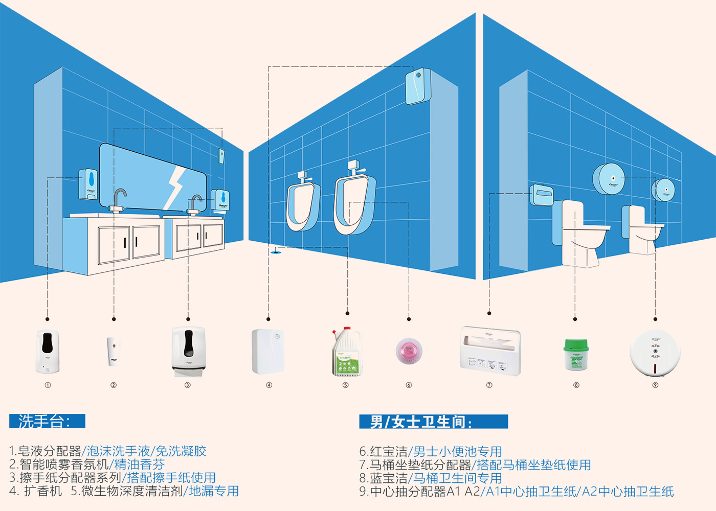 萬戈衛(wèi)生間商用清潔衛(wèi)生用品解決方案,有效解決常規(guī)衛(wèi)生間使用大卷紙安全性差,隨意拽取造成浪費,拉扯時大面積接觸紙張有交叉感染風險。